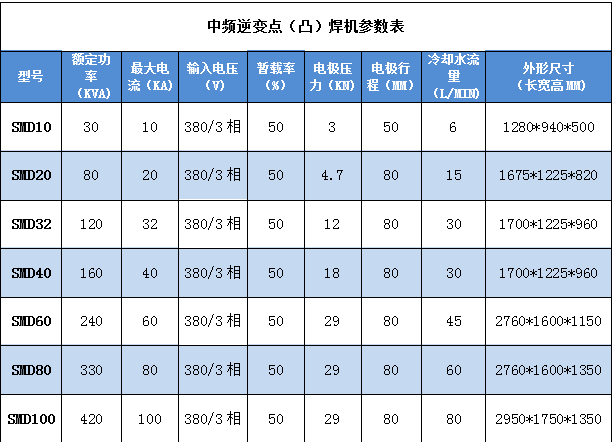 低碳鋼板、不銹鋼板、鍍鋅板、鋁板、線材的點焊、多點凸焊、汽車制造行業高強度鋼、熱成型鋼的點焊和螺母凸焊,以及高低壓電氣行業銅線、銀點和銅板的焊接。
